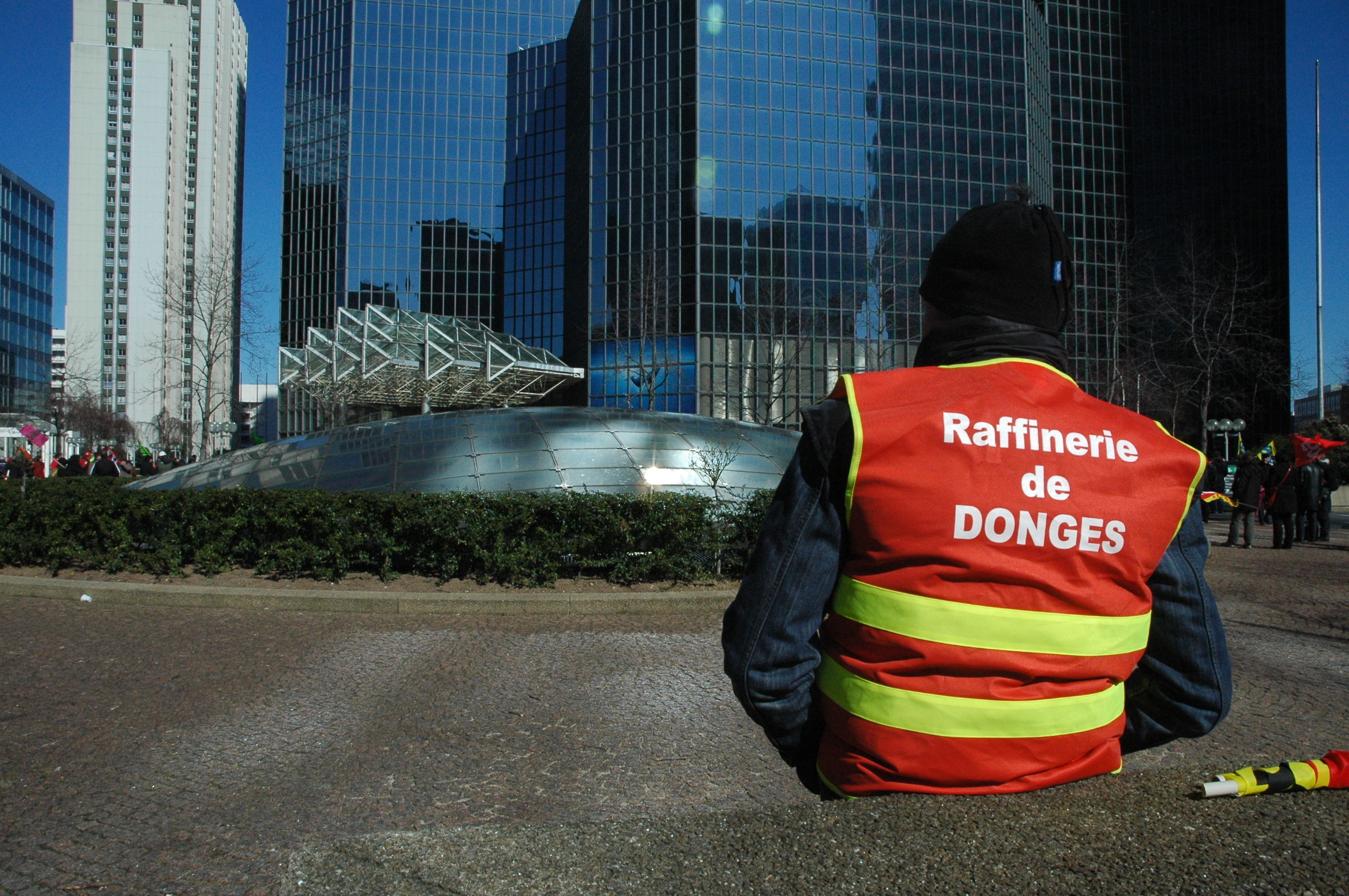 Télécharger la photo “Travailleur de la raffinerie de DONGES Loire Atlantique devant le siège de TOTAL.”