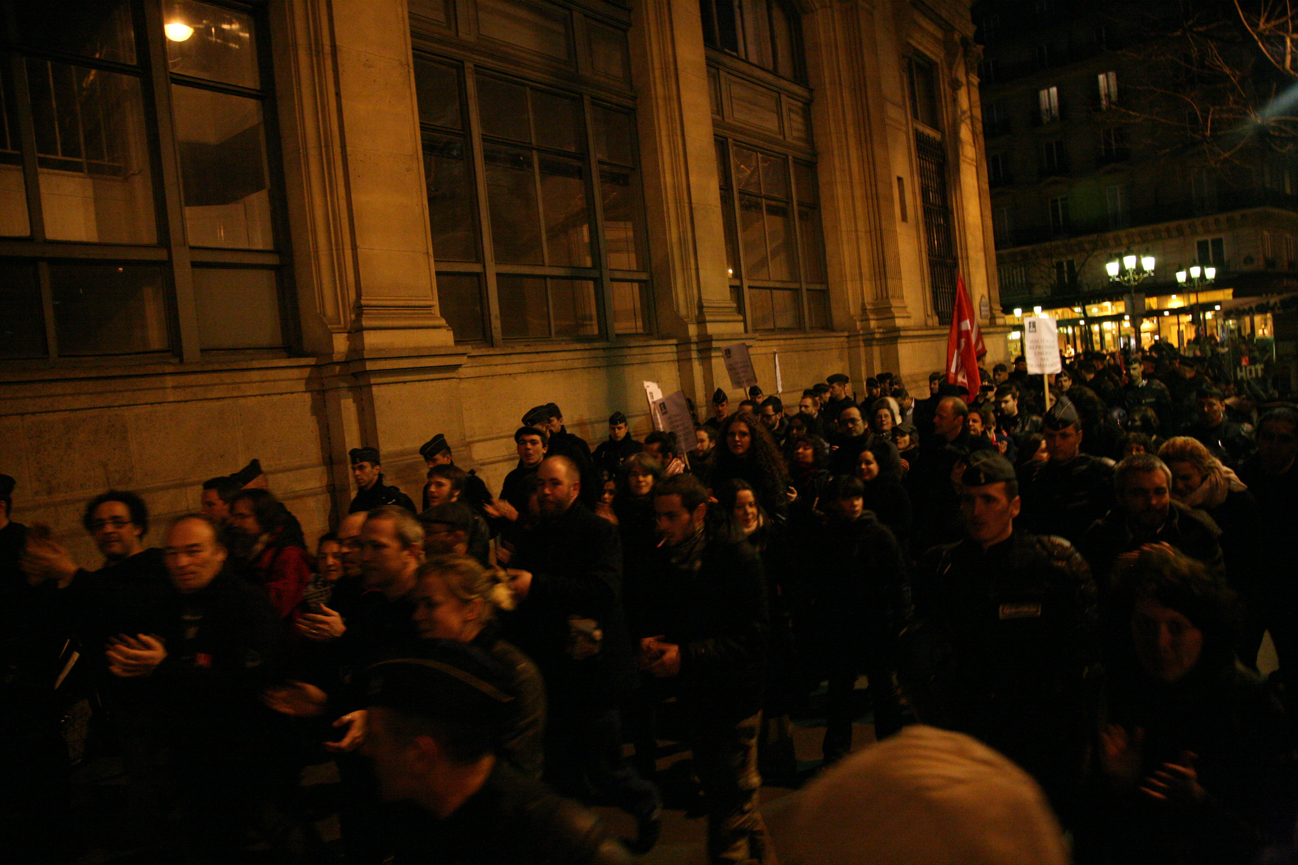 Télécharger la photo “Le rassemblement encercle et evacue par les gardes mobiles.”