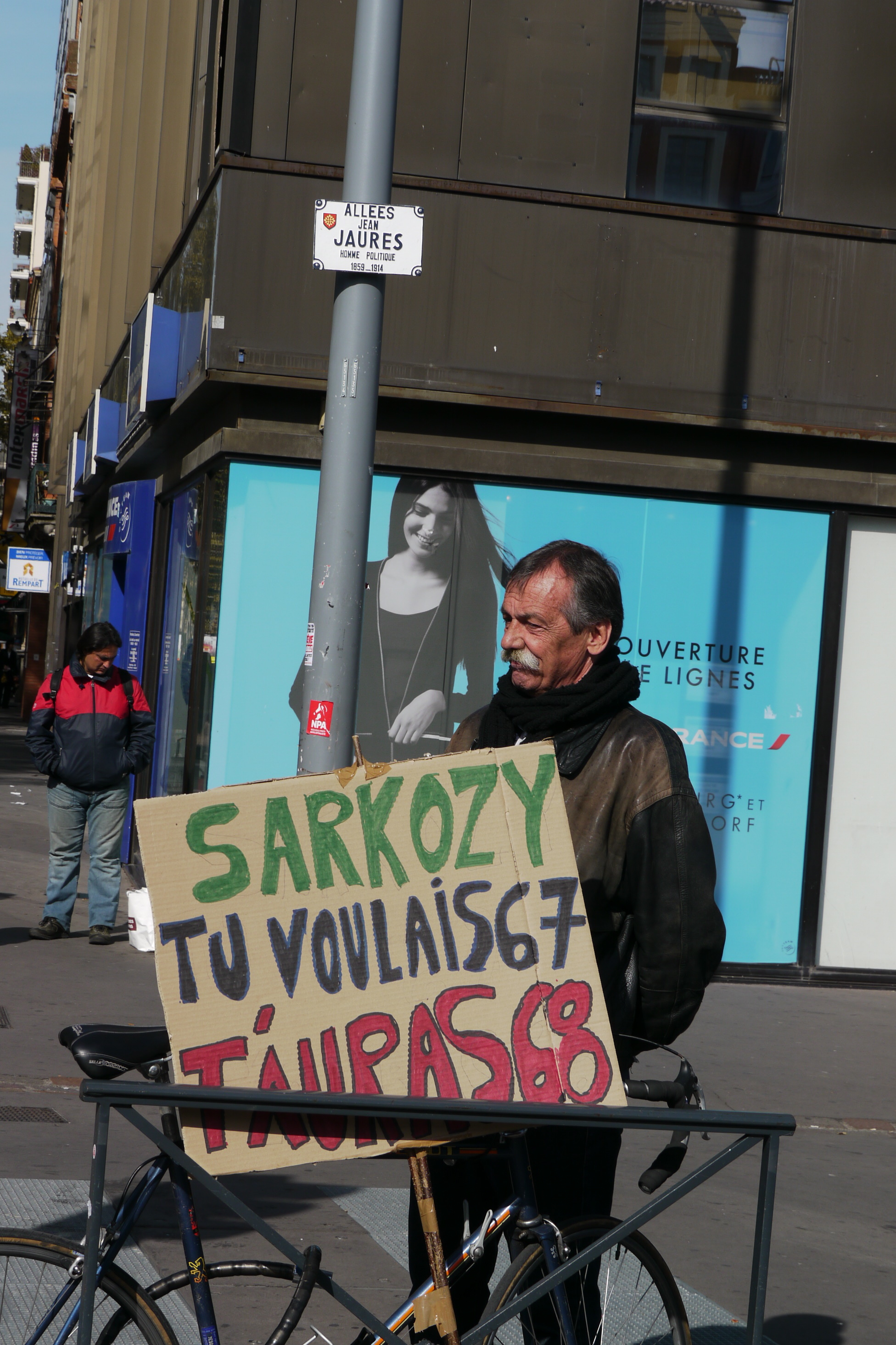 Télécharger la photo “Pancarte : Sarkozy, tu voulais 67, t'auras 68”