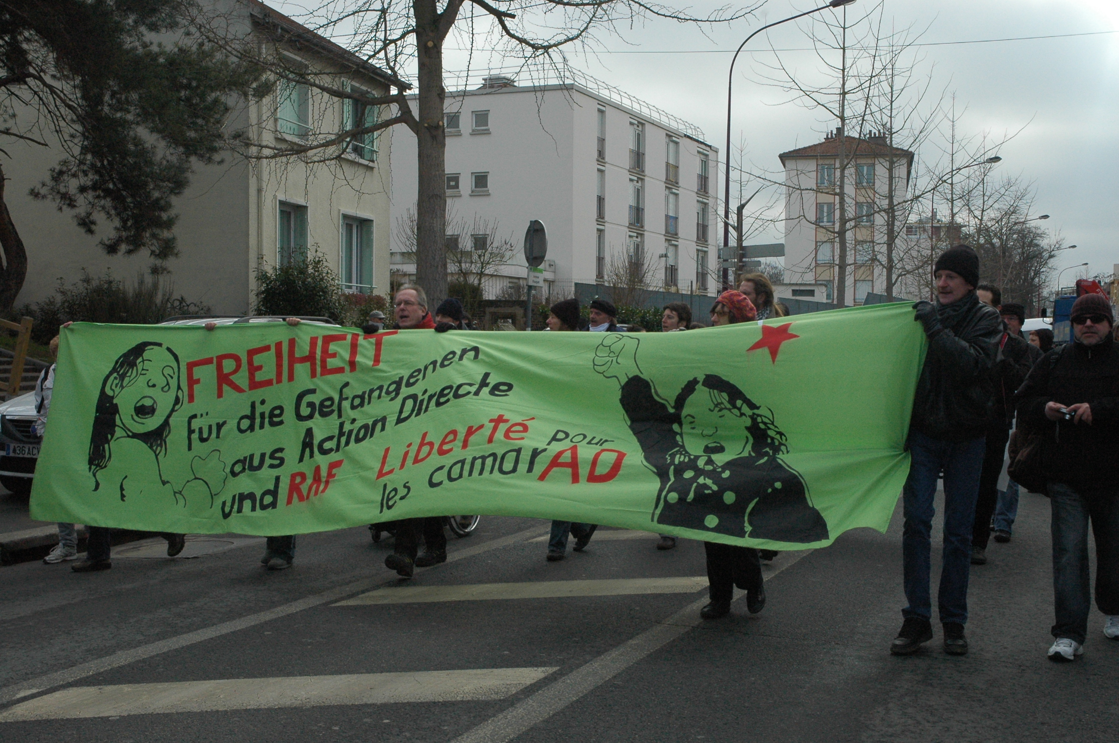 Télécharger la photo “banderole Allemande et manifestants devant la Prison de FRESNES liberté pour les camarades d'ACTION DIRECTE.”