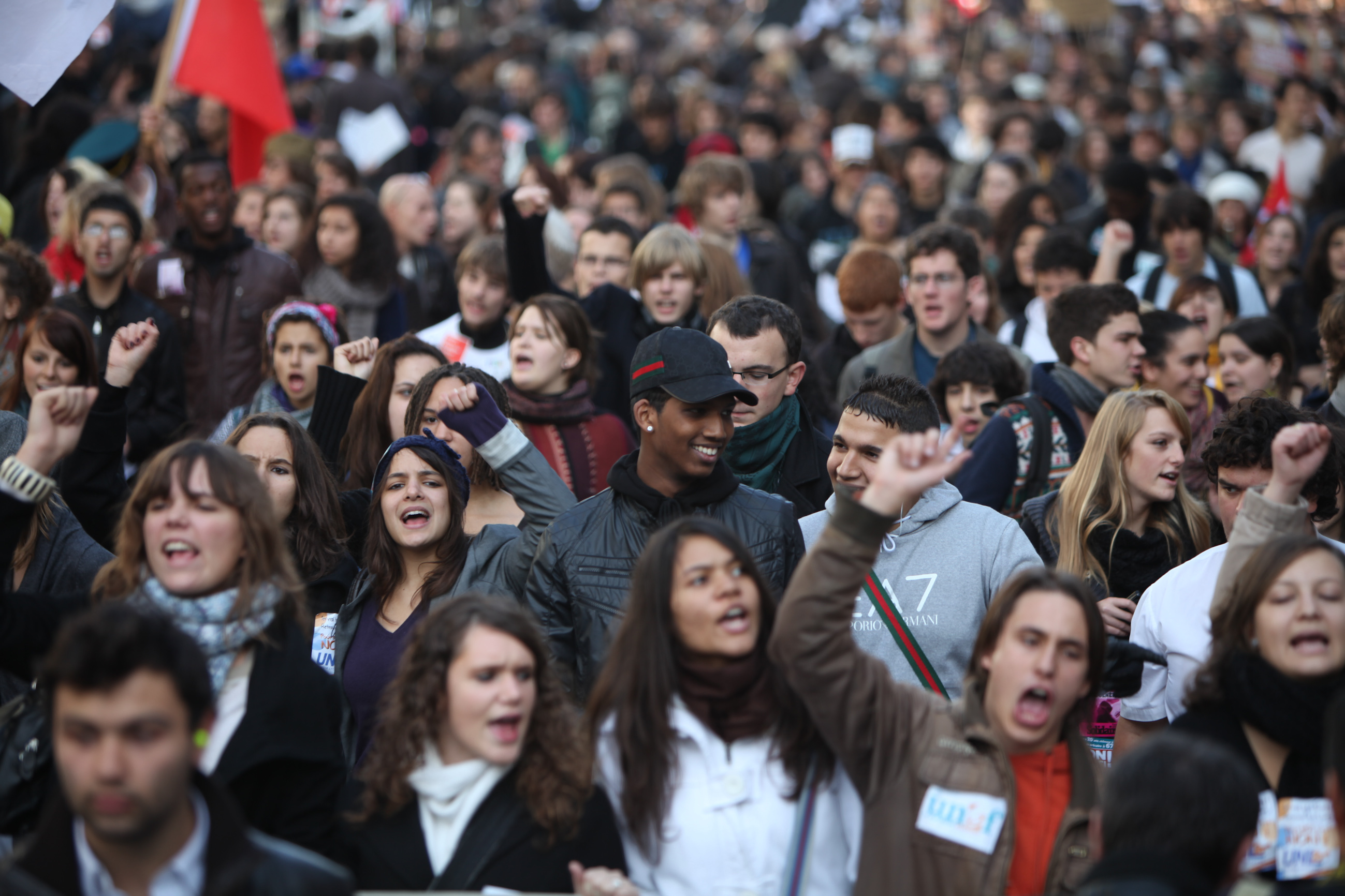 Télécharger la photo “Cortège jeune dans une manifestation contre la réforme des retraites”