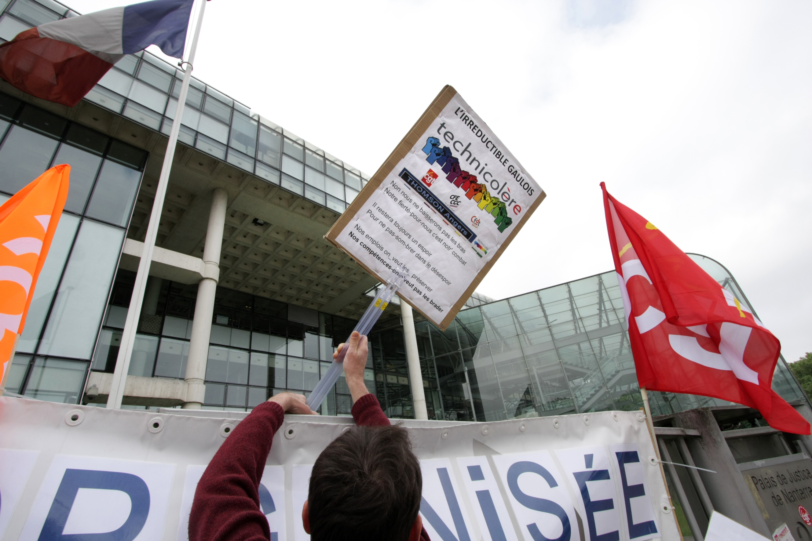 Télécharger la photo “Banderole fixée sur la grille du tribunal”