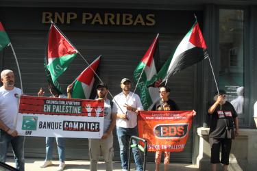 2024/08/31 Action de soutien à la devant le siège de BNP Paribas à Strasbourg