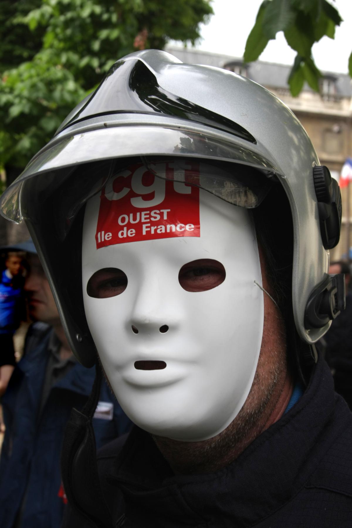 le 23 avril 2009 rassemblement des gaziers et électriciens en grève depuis le début avril 2009 prés de l'Assemblée Nationale. PARIS/2009/04/23/JMB.