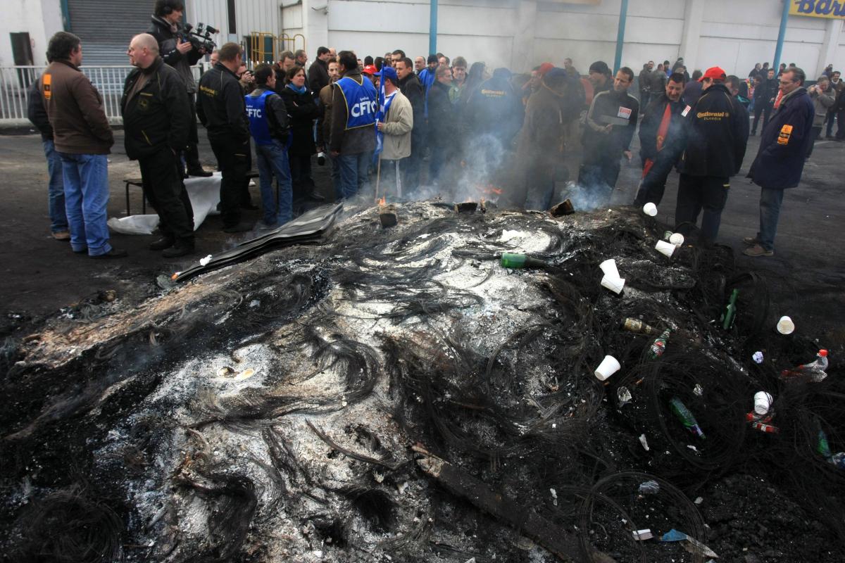 Le 17 mars 2009 les travailleurs de Continental à Clairoix (60) sont rassemblés devant l'entrée de l'usine. La veille ils ont manifesté à Reims à l'occasion du CCE dont ils ont empêché la tenue. La direction a annoncé la fermeture du site malgré l'engagement qu'elle avait pris du maintien de l'activité en échange de l'acceptation par les salariés en septembre 2007 du retour au 40h. CLAIROIX/2009/03/17/JMB