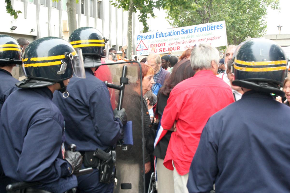 la police empèche la manif d'aller vers le centre de rétention de Bobigny