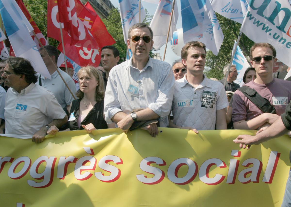Le 1° mai 2007, entre les deux tours de la présidentielle 2007, grosse manifestation à l'appel de la CGT, de la FSU, de l'UNSA et de SUD Solidaires, de la République à la Nation. Un responsable de l'UNSA et Bruno JULLIARD de l'UNEF. La manifestation est très anti Sarkozy. JMB/2007/05/01
