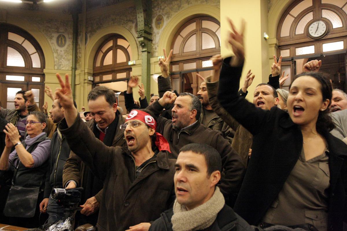 Le 13 janvier 2011 à la bourse du travail à Paris meeting de soutien à la lutte du peuple tunisien contre la dictature de Ben Ali