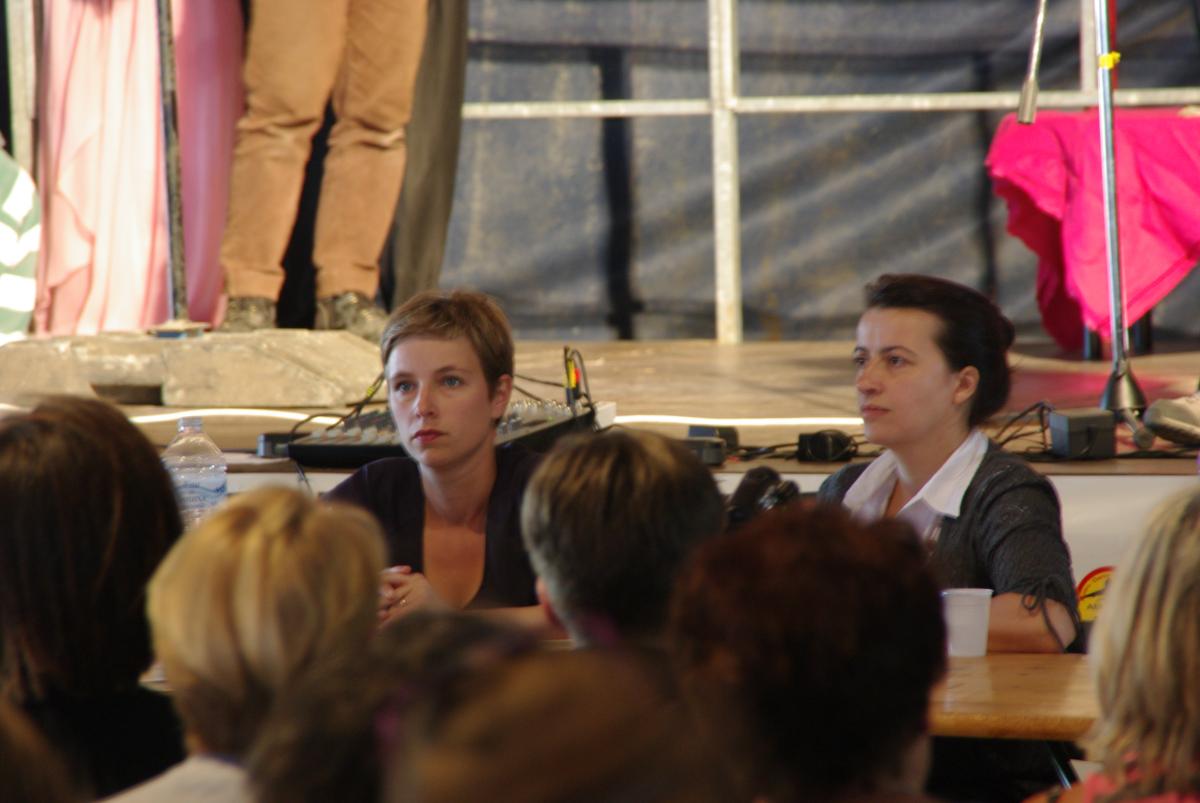 Clémentine Autain et Cécile Duflot lors du meeting contre la construction de l'aéroport à Notre Dame des Landes