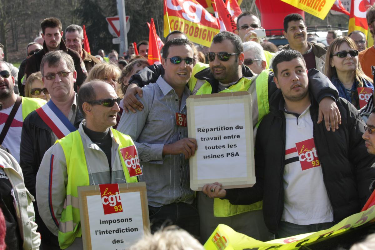 Le 22 mars 2012 rassemblement à l'appel de la CGT Ile de France devant l'usine Peugeot Citroën Aulnay, avec la présence de Bernard Thibault, contre la menace de fermeture de l'usine.