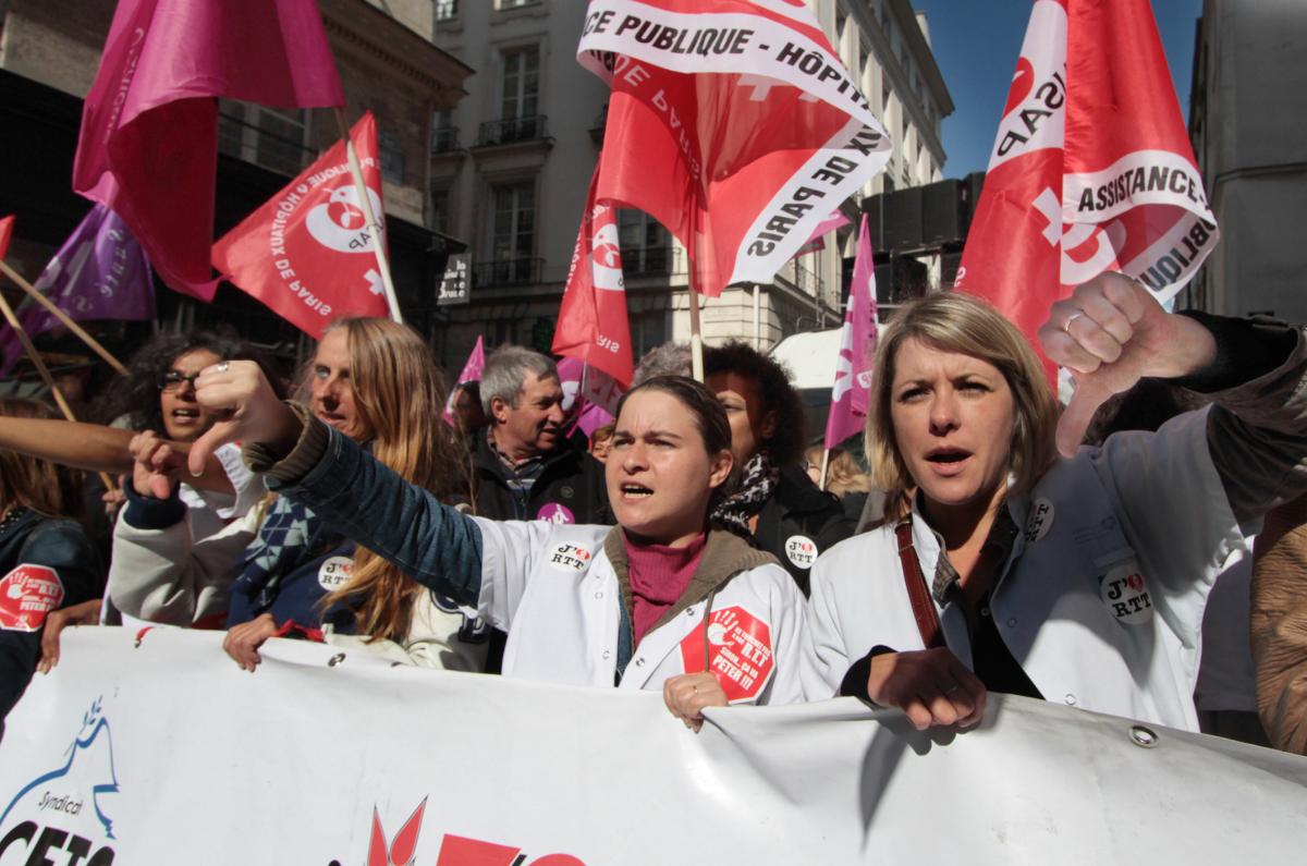 Paris, le 1 octobre 2015. Manifestation en direction du Sénat des salariéEs de l'AP-HP