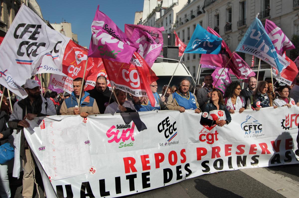 Paris, le 1 octobre 2015. Manifestation en direction du Sénat des salariéEs de l'AP-HP
