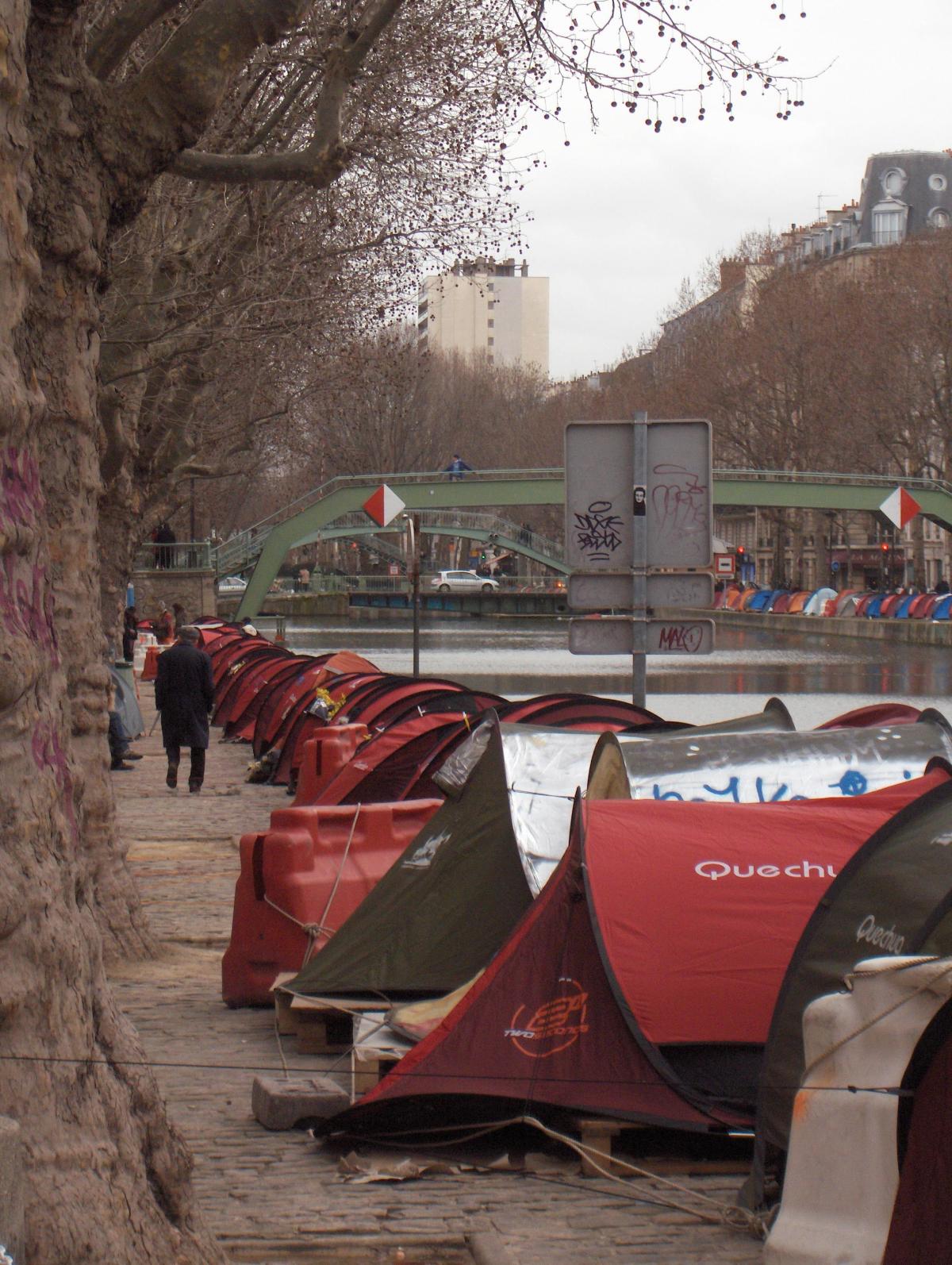 à 4 mois de l'élection présidentielle, campement de 250 tentes sur les bords sur le canal Saint-Martin à Paris, à l'appel de l'association
