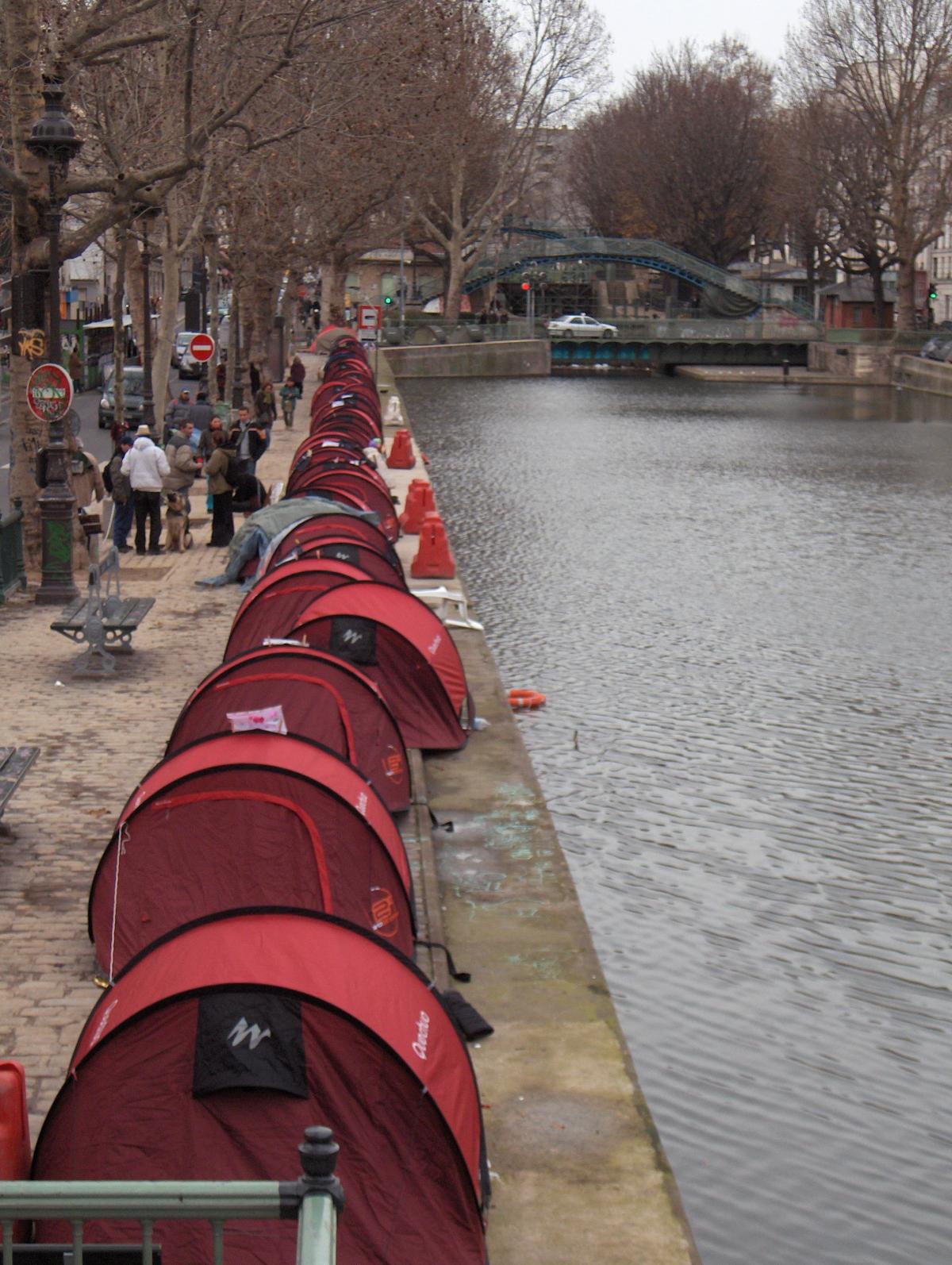 à 4 mois de l'élection présidentielle, campement de 250 tentes sur les bords sur le canal Saint-Martin à Paris, à l'appel de l'association