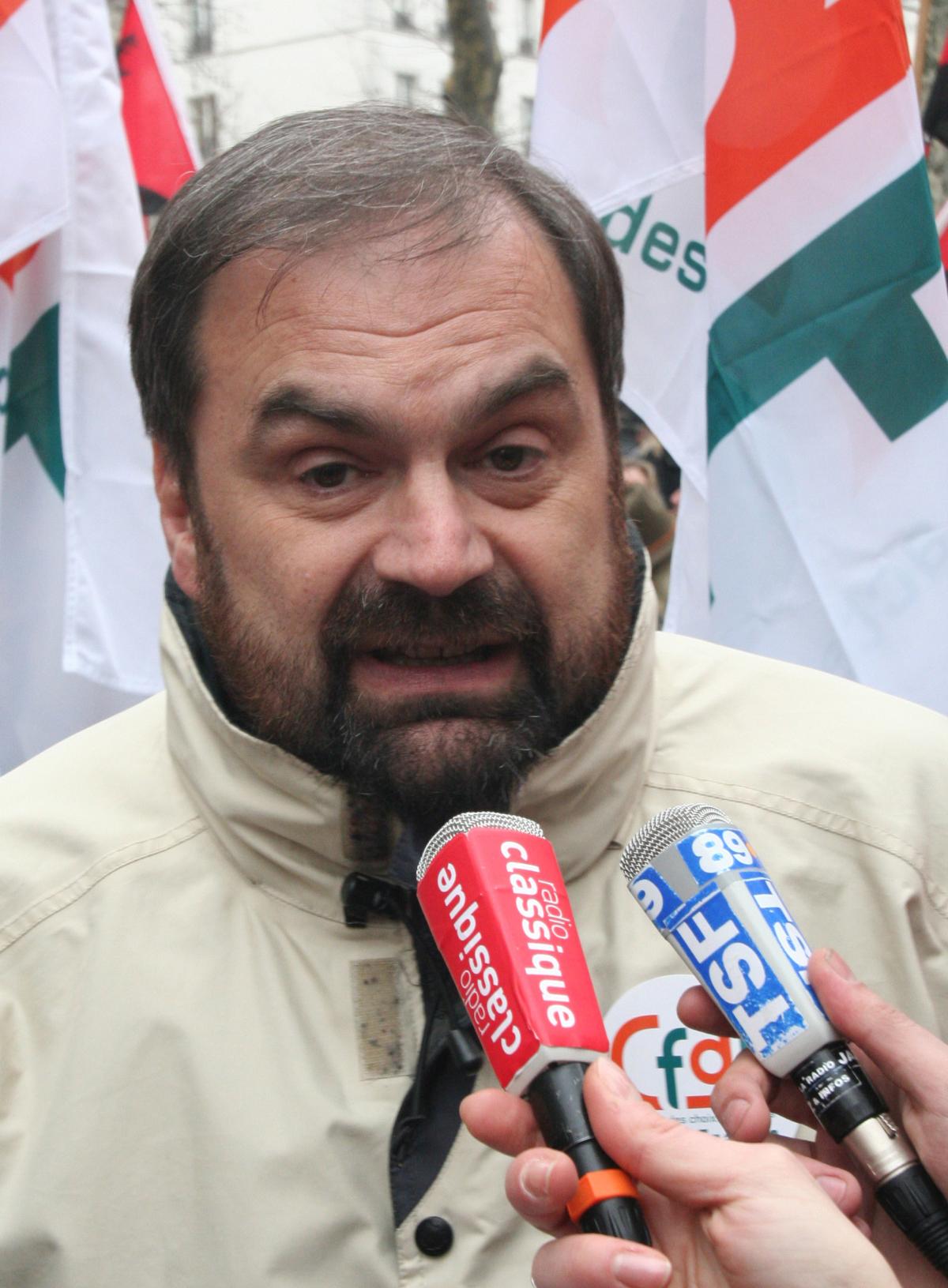 CHEREQUE secrétaire général de la CFDT en tête d'une des premières manifestations contre le CPE le 2 fev 2006