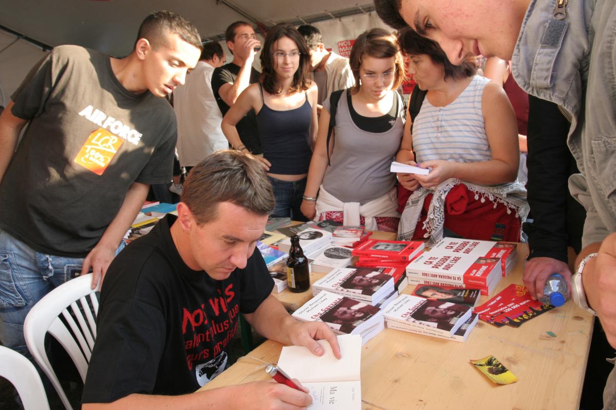 Olivier Besancenot dédicace son livre au stand LCR de la fête de l'Humanité
