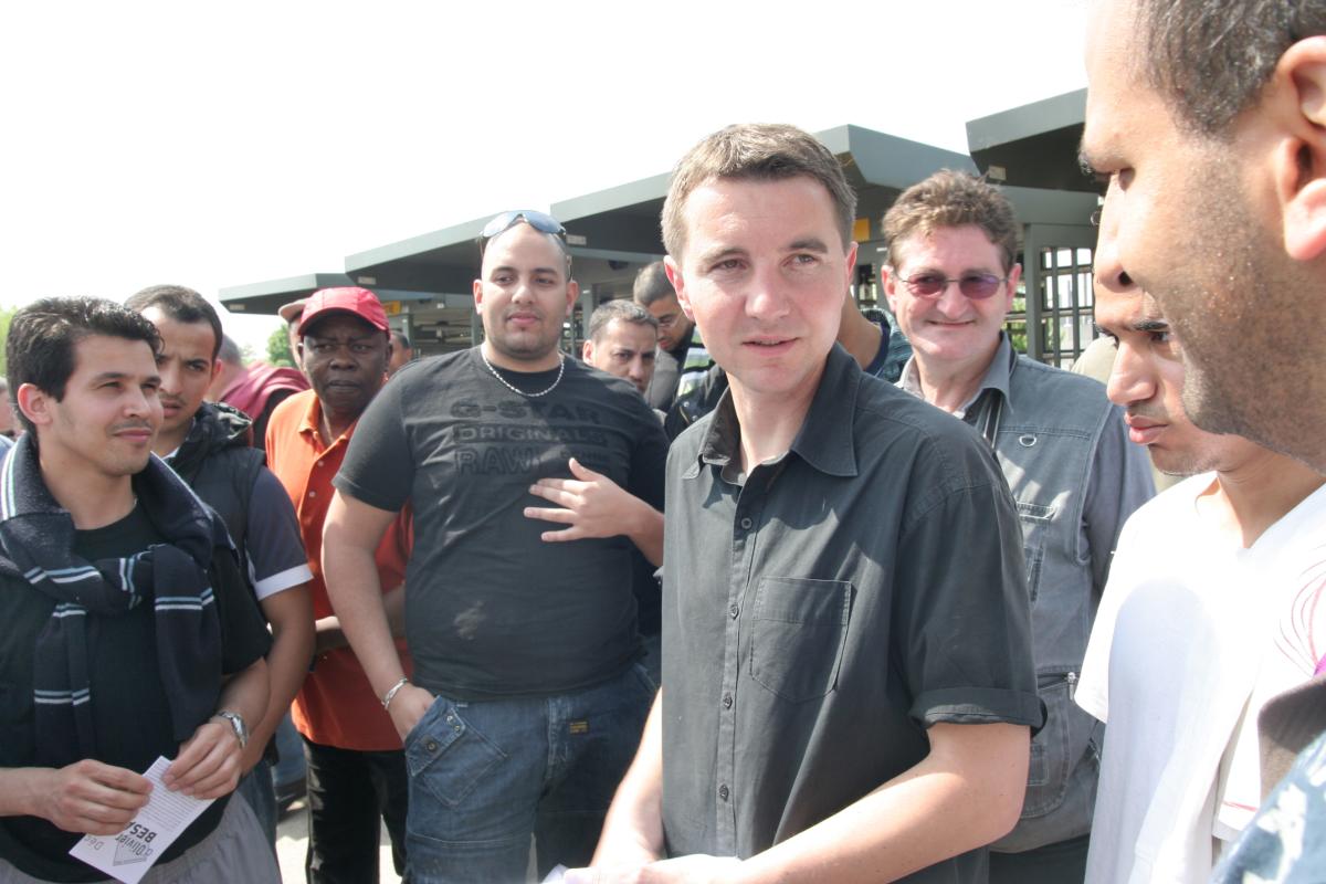 Olivier besancenot à la sortie des usines Citroën à Aulnay