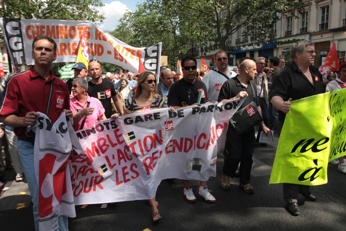 manifestation à Paris le 17 juin 2008 sur les retraites et les 35 heures à l'appel de la CGT, de la CFDT, de la FSU et de de SUD Solidaires. PARIS/2008/06/17/JMB