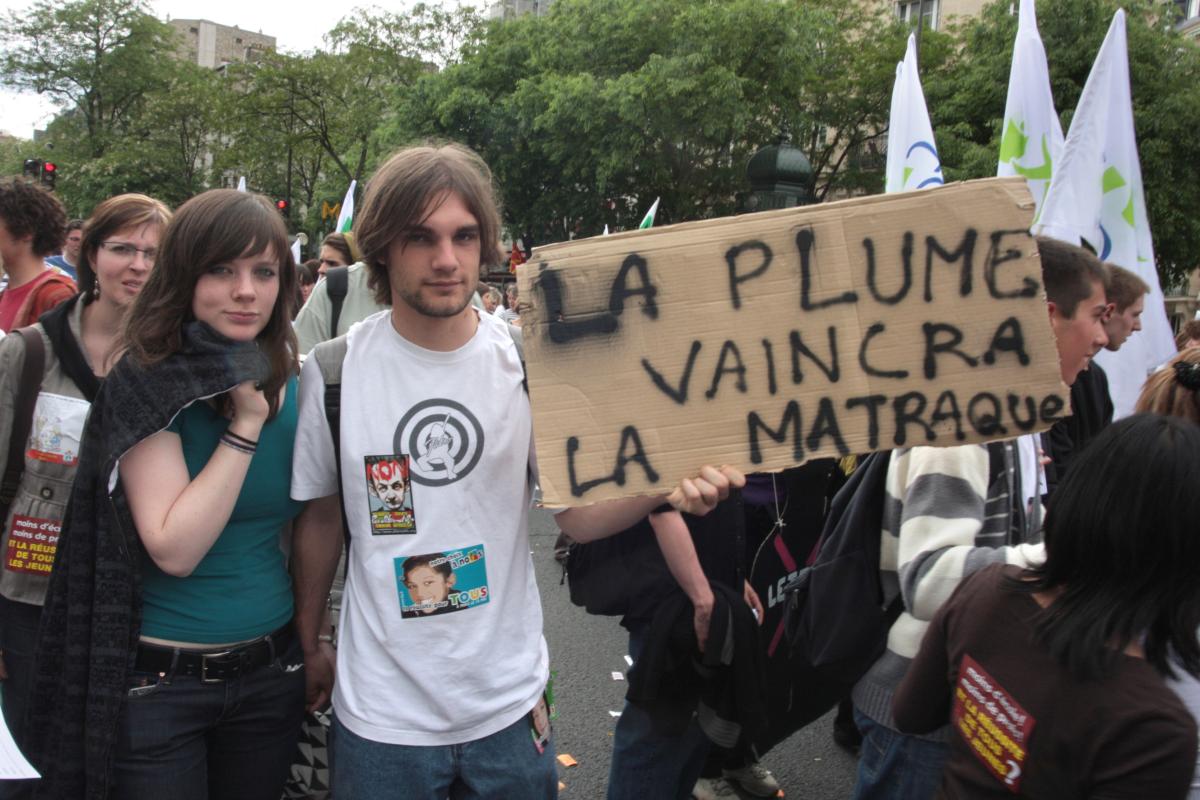 grève le 15 mai 2008 et manifestations dans toute la France. A Paris de la place d'Italie à la République à l'appel des syndicats de fonctionnaires. Le soir même du 15 mai, Sarkozy annonce une loi sur le service minimum dans l'Education Nationale. Des cortèges lycéens en nombre significatif font la tête de la manifestation.PARIS/2008/05/15/JMB.