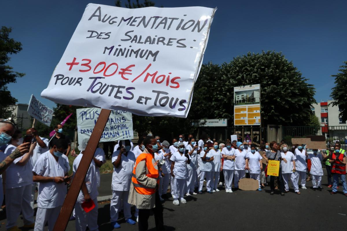 Saint-Denis le 28 mai 2020,devant l'hôpital Casanova rassemblement du personnel et des soutiens.
