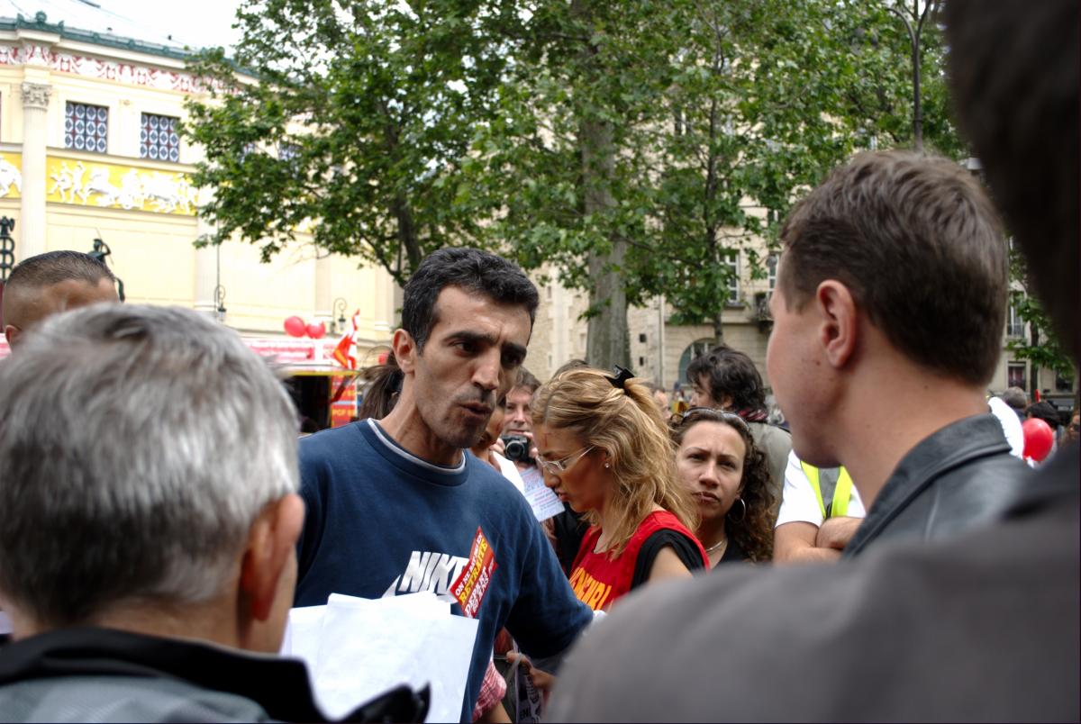 Discussion entre Olivier Besancenot et un manifestant.