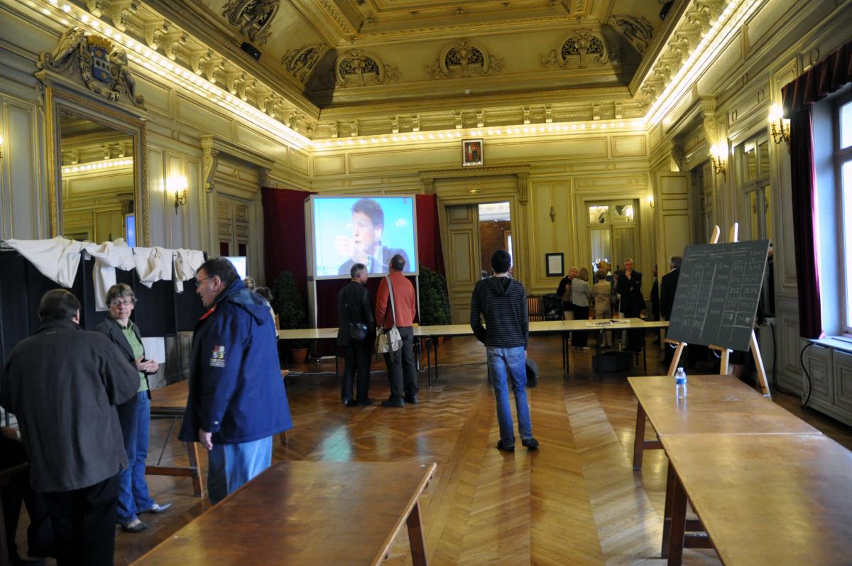 Salle des résultats de la mairie de Cherbourg.