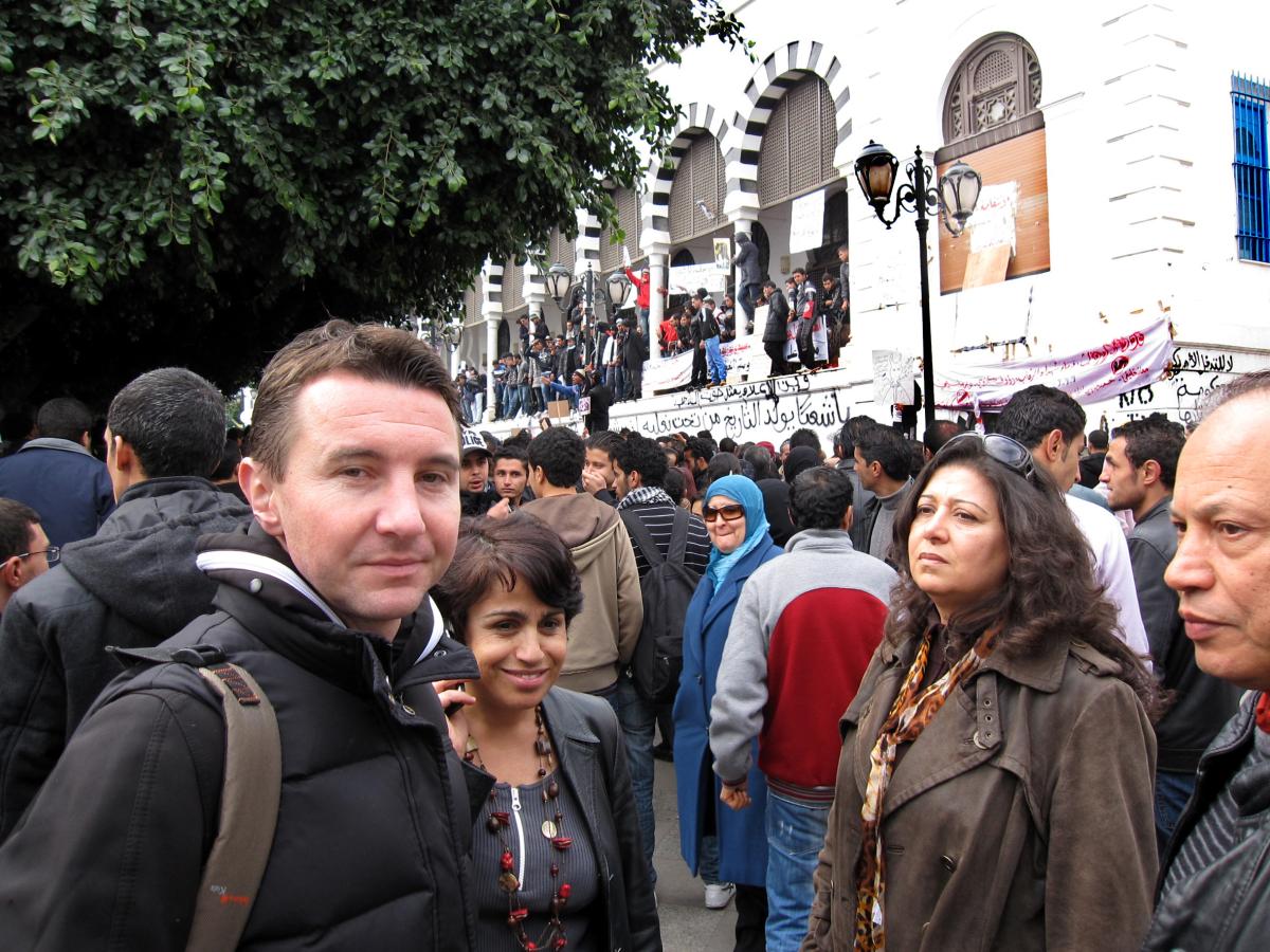 les 25 et 26 janvier 2011 Olivier Besancenot, à Tunis, rencontre des syndicalistes, des représentants de la charte du 14 janvier, des militants de l'extrème gauche tunisienne.