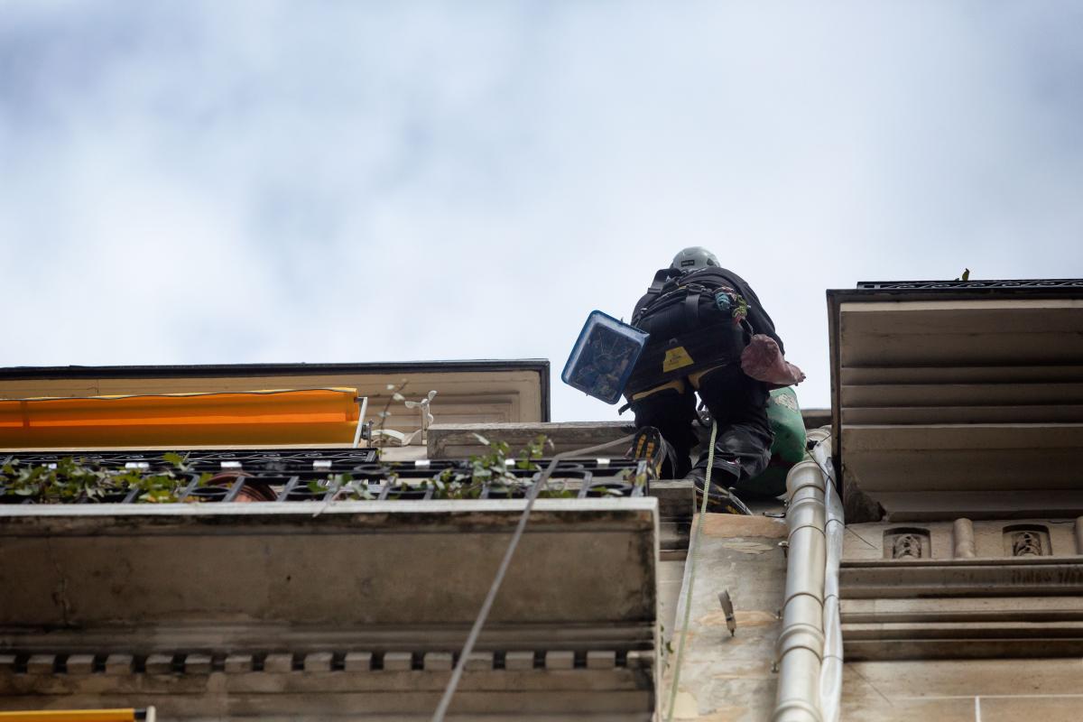 France, Paris, 2021-06-12. A rope access technician. Photograph by Martin Noda / Hans Lucas.