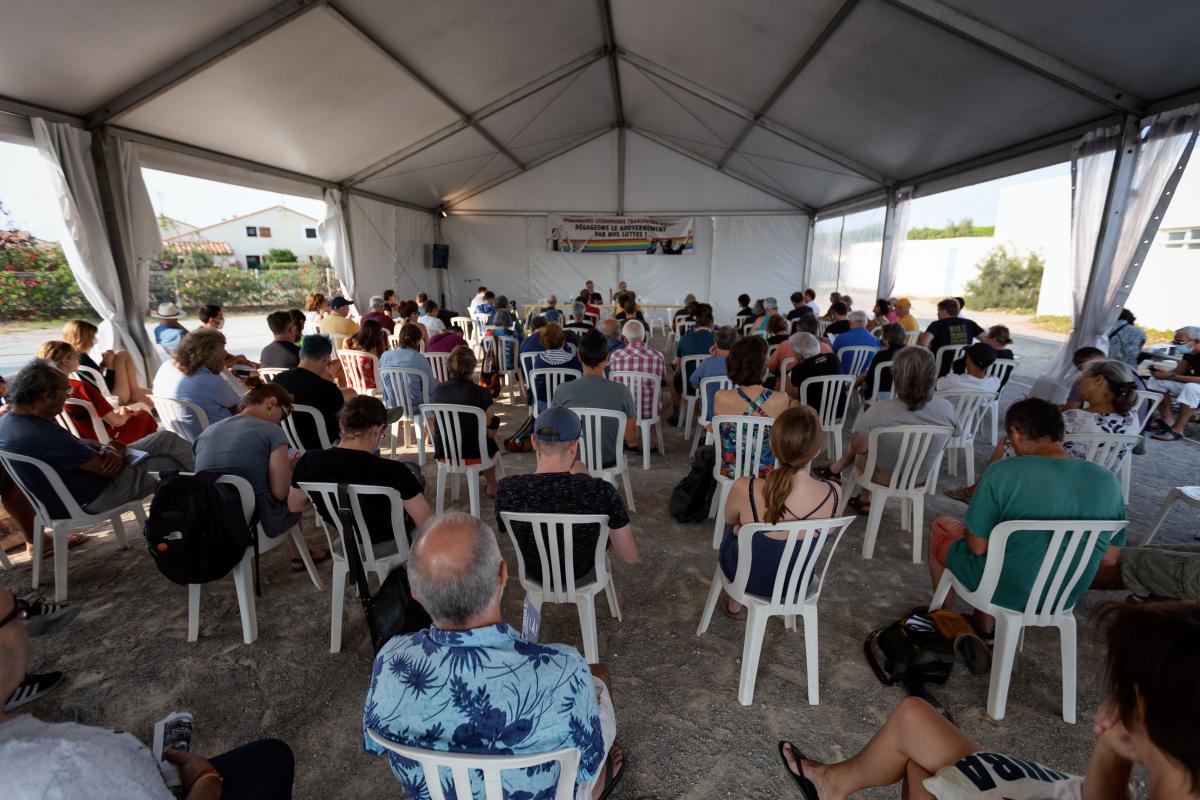 France, Port Leucate, 2021-08-23. Universite d ete du NPA. Photographie de Martin Noda / Hans Lucas