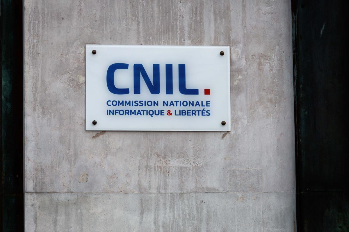 France, Paris, 2022-01-20. Logo of the CNIL, national commission for information technology and freedom, hanging in front of their Paris headquarters. Photograph by Martin Noda / Hans Lucas.