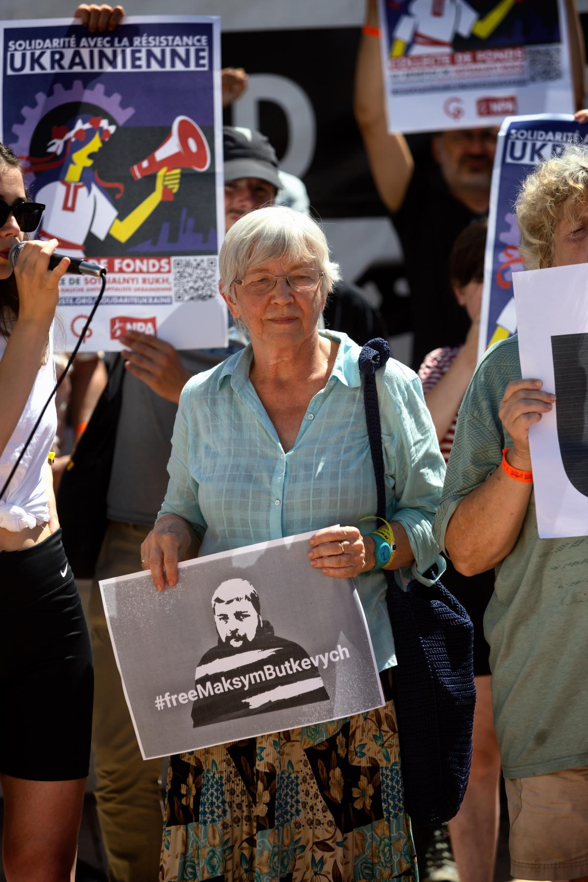 France, Port Leucate, 2022-08-24. Catherine Samary at an action against the war in Ukraine. NPA Summer university. Photograph by Martin Noda / Hans Lucas