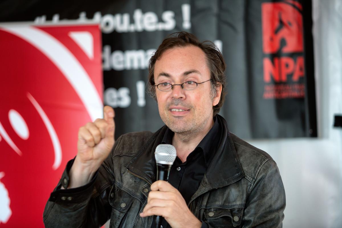 France, Bretigny-sur-orge, 2022-09-12. Alexander Neumann prend la parole. Stand du NPA a la fete de l humanite. Photographie de Martin Noda / Hans Lucas