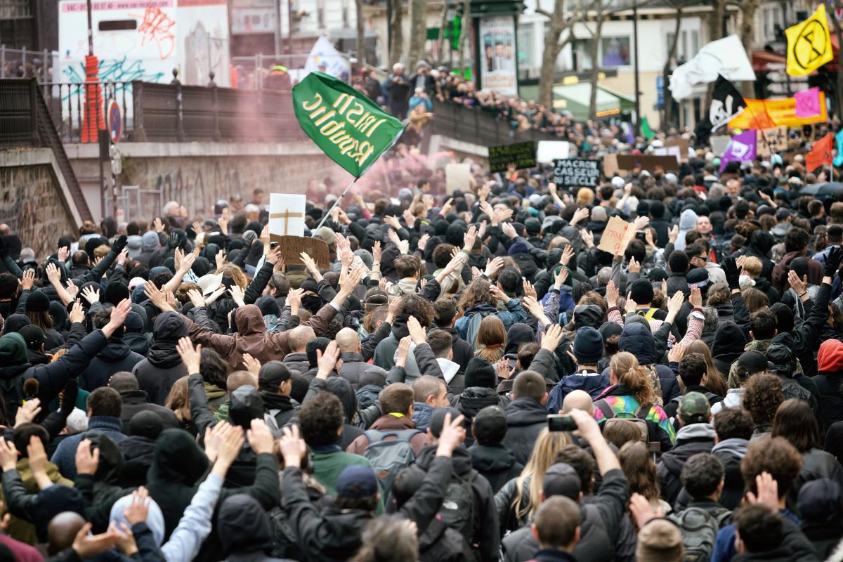 France, Paris, 2023-03-23. 9th inter-union demonstration against pension reform. Photograph by Martin Noda / Hans Lucas