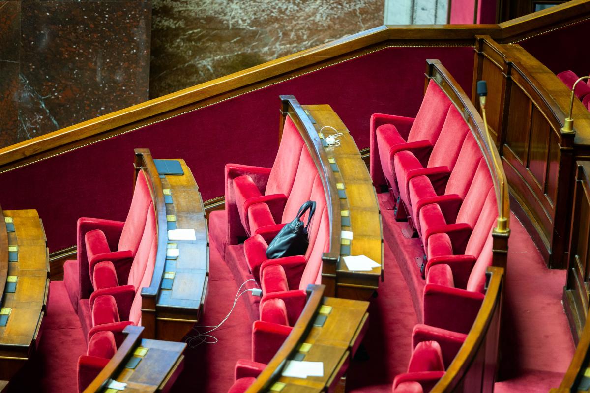 France, Paris, 2024-07-18. Empty seats after the vote and stuff left behind. National Assembly, Opening session of the 17th legislature and election of the president of the assembly. Photograph by Martin Noda / Hans Lucas