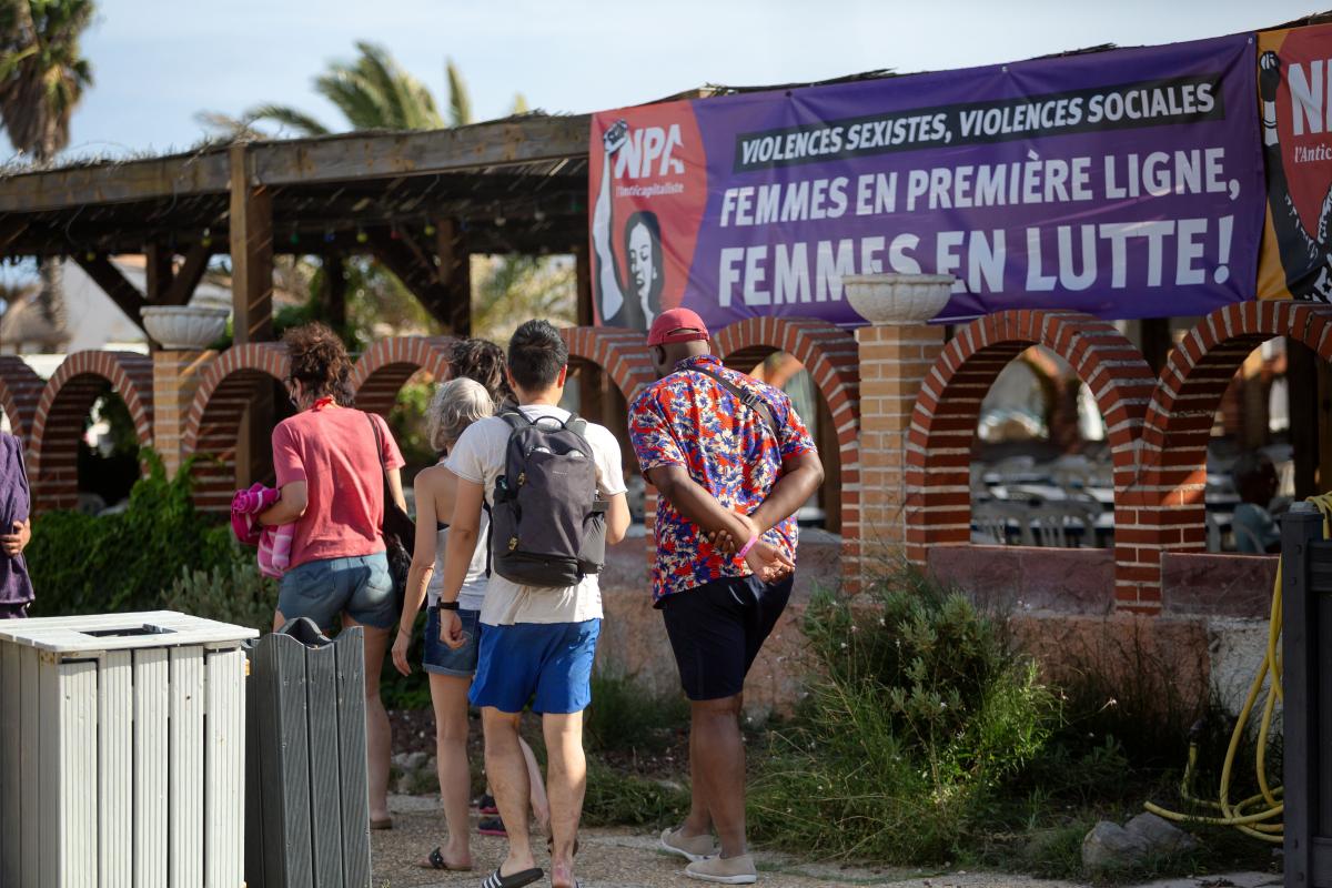 France, Port Leucate, 2024-08-25 Des participants partents a la plage. Universite d ete du NPA. Photographie de Martin Noda / Hans Lucas