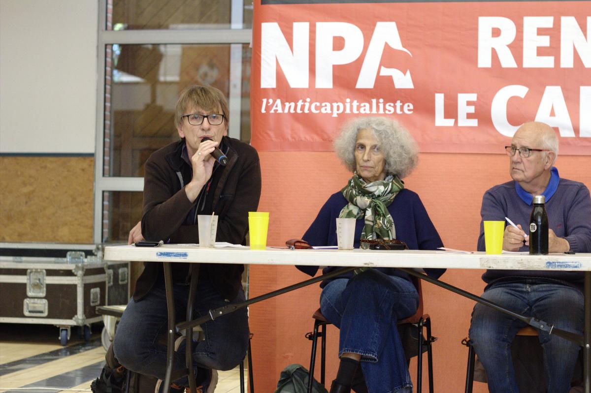 France, Toulouse, 2024-09-28. Gilles Garric, de La Voie est Libre, prend la parole dans le débat "Luttes sociale, luttes environnementales : un même combat contre le capitalisme". Fête anticapitaliste