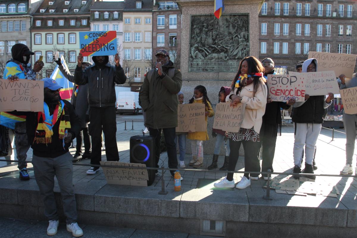 France, Strasbourg 01-02-2025: rassemblement de militantEs et citoyenNes de la RDC au pied de la statue Kléber