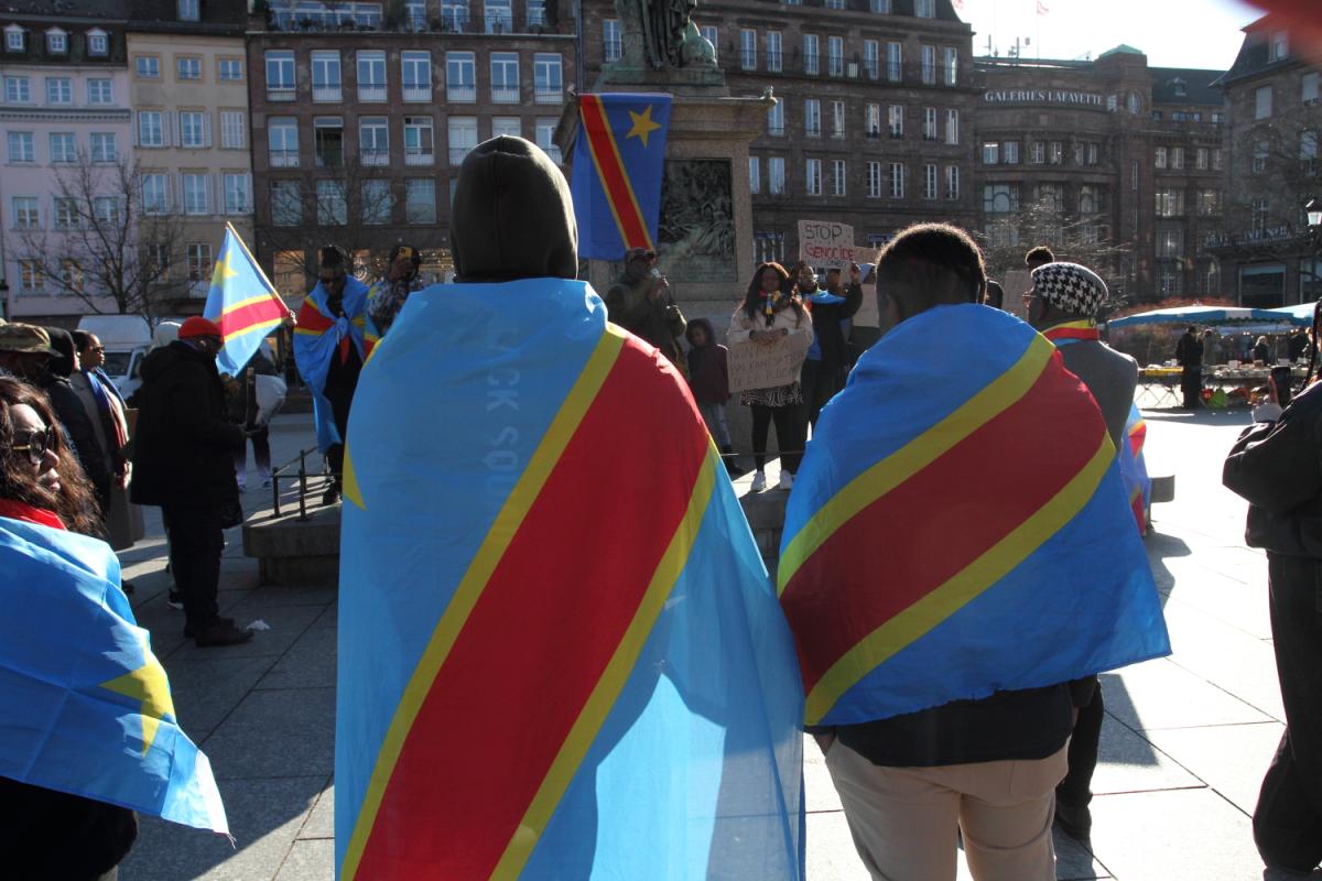 France, Strasbourg 01-02-2025:des militants revêtus du drapeau de la RDC
