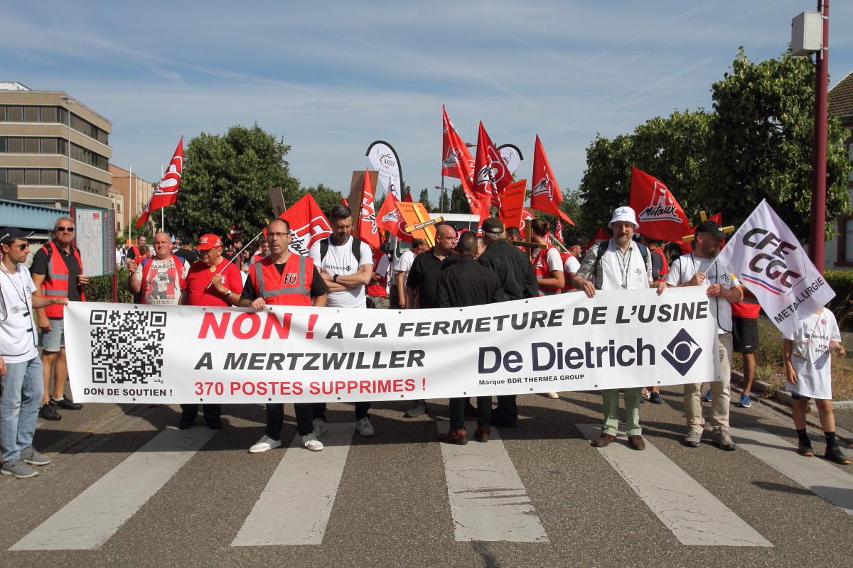 2025/07/05 Manifestation du personnel contre la fermeture de l'usine De Dietrich à Mertzwiller