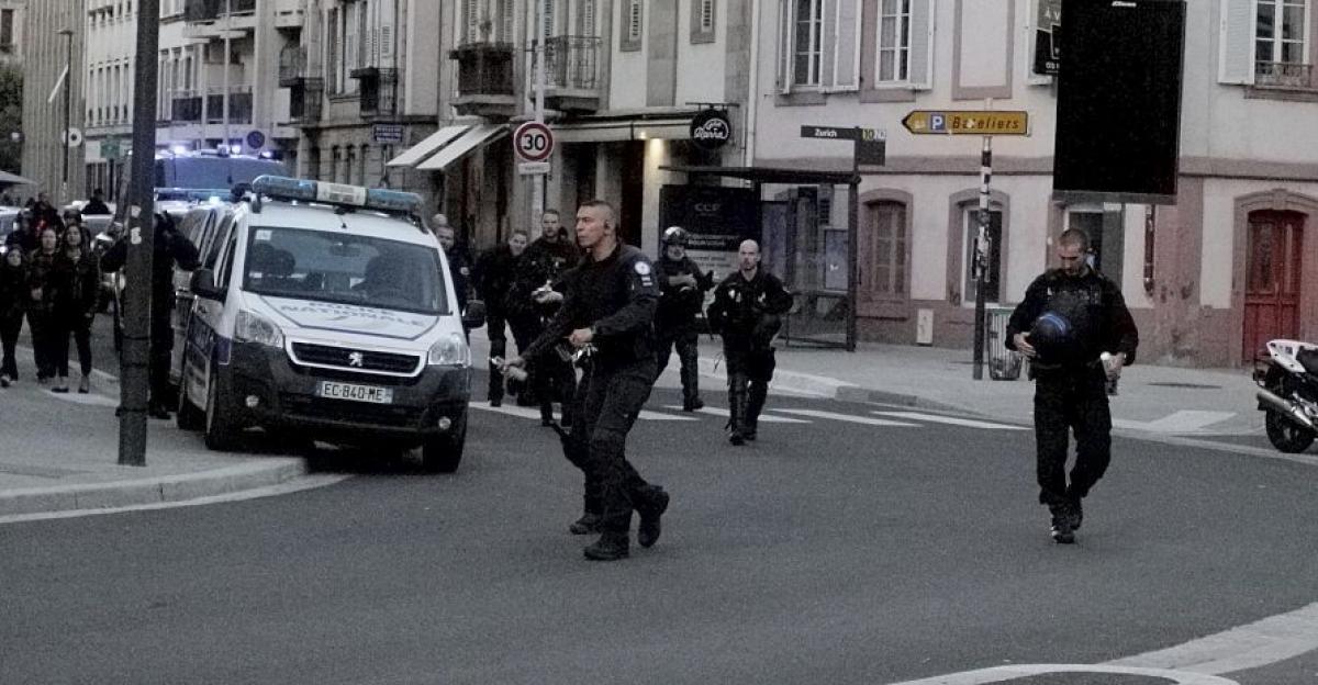 France, Strasbourg, 02-10-2025:un policier lance une grenade à la main.
