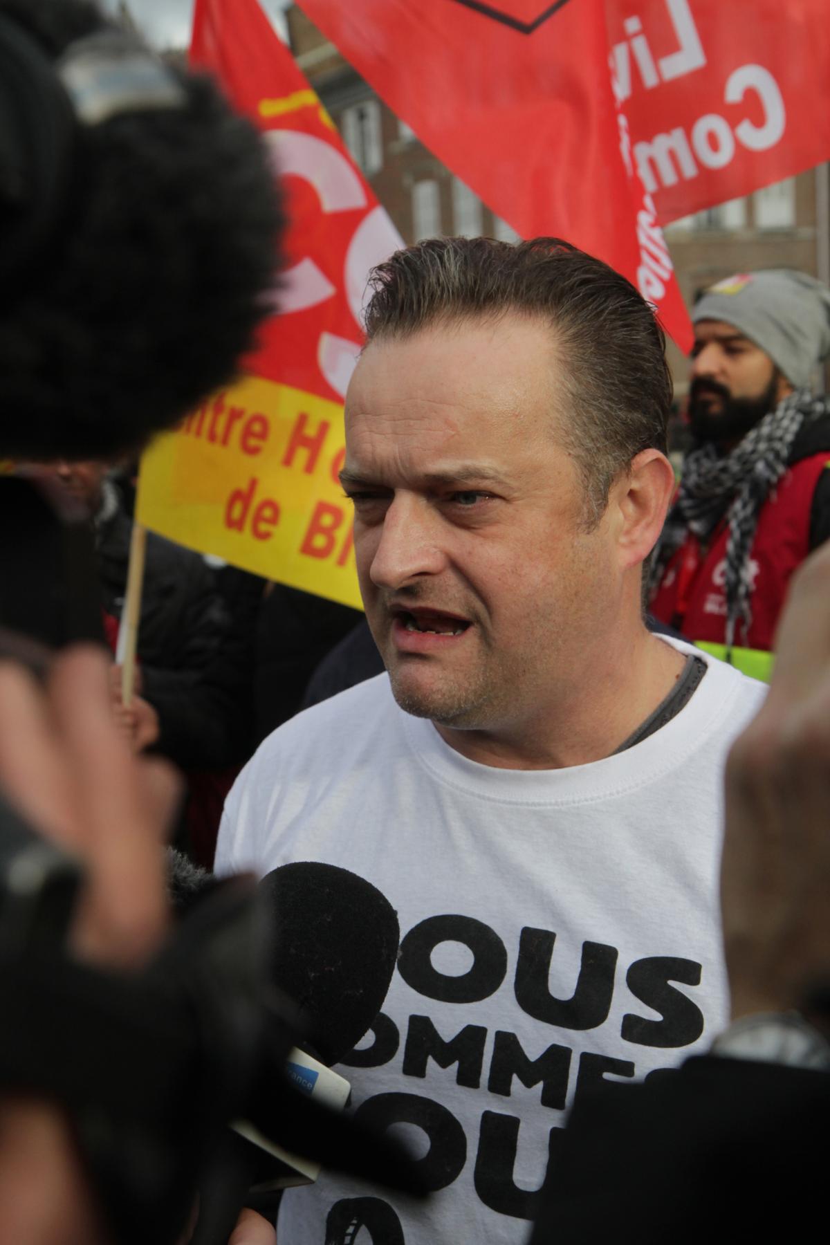 Amiens, le 11 janvier 2017, rassemblement devant le palais de justice pour entendre le verdict de la cour d'appel concernant les 8 salariés de Goodyear condamnés en première instance à un an de prison ferme.