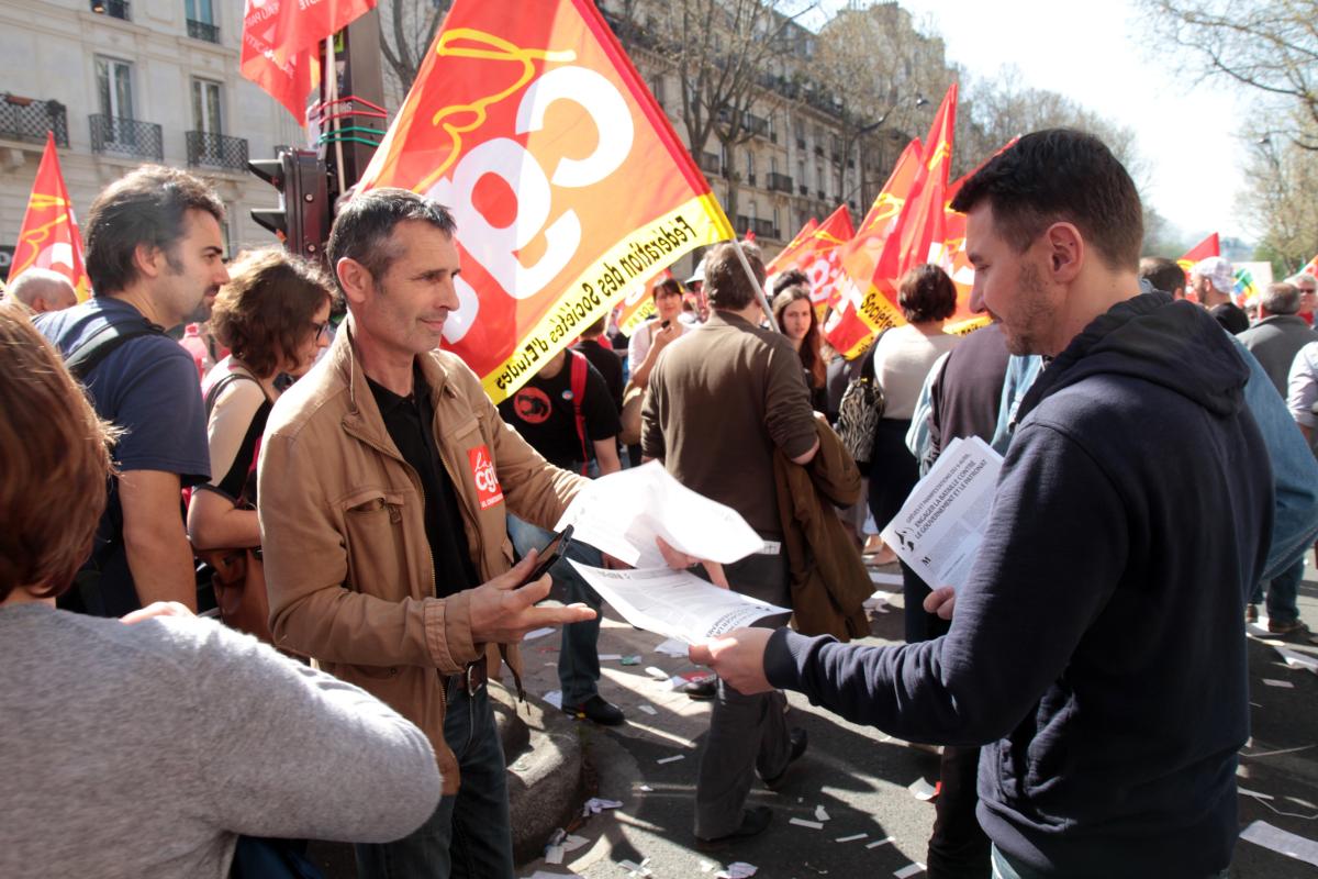 Paris, le 9 avril 2014 manifestation intersyndicale contre la politique d'austérité, la loi Macron