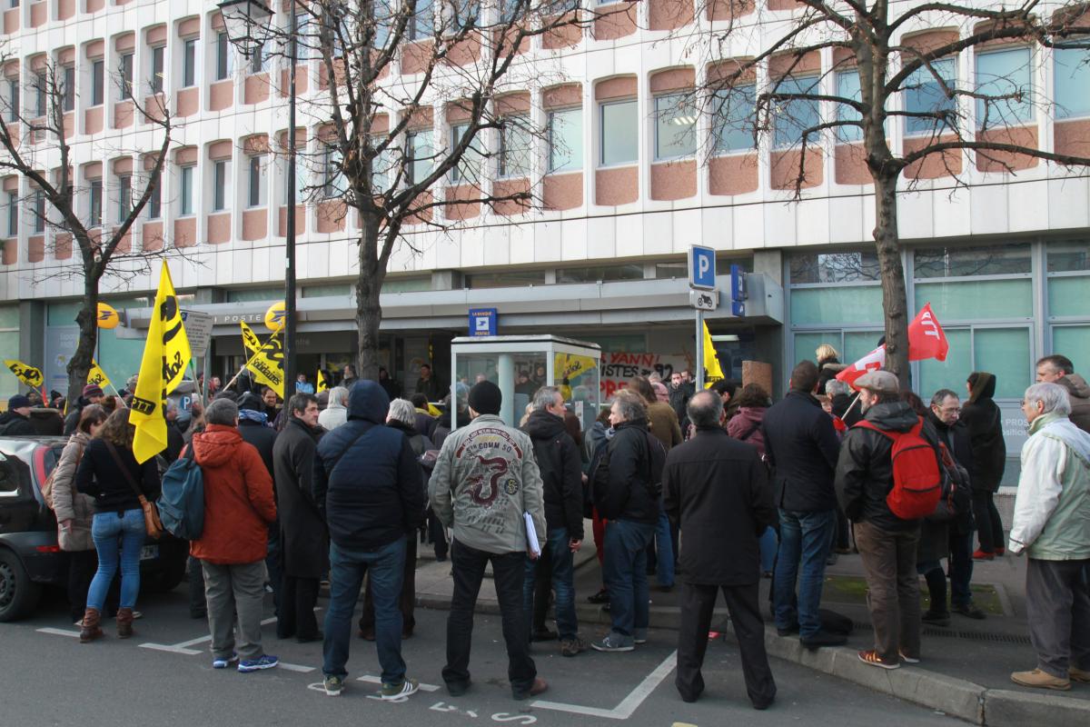 Nanterre, le 20 janvier 2015, rassemblement de soutien à Yann Le Merrer, révoquer le 9 janvier de la fonction publique par la direction de la Poste pour avoir pris la parole dans les services lors de la grève des postiers du 92.
