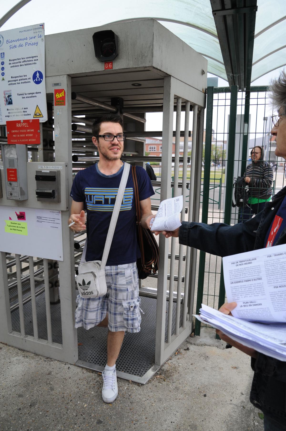 Olivier Besancenot, candidat tête de liste en Ile de France aux Européennes Usine PSA Poissy Yvelines 20 mai 2014