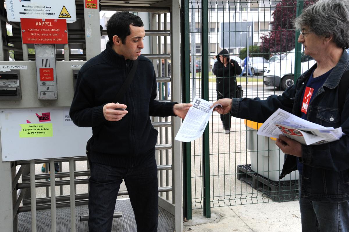 Olivier Besancenot, candidat tête de liste en Ile de France aux Européennes Usine PSA Poissy Yvelines 20 mai 2014