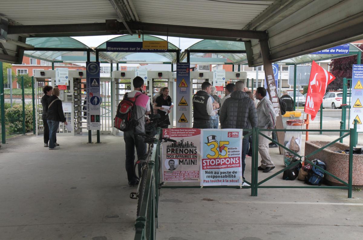 Journée de campagne Européennes dans les Yvelines. Olivier Besancenot devant PSA Poissy, au service psychiatrique de l'Hôpital de Poissy-St.Germain, au Technocentre Renault de Guyancourt, et enfin au dépot de bus Phébus bloqué par les salariés.