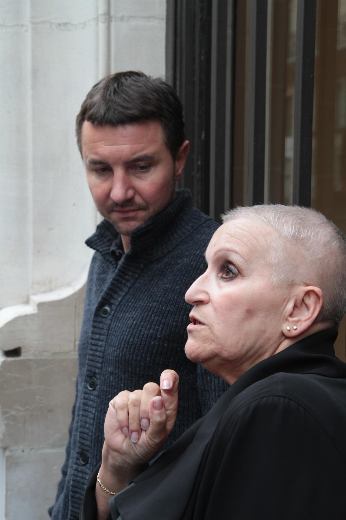 Christiane Leveuf, victime du sang contaminé, en lutte pour le respect des accords de dédommagement passés avec AXA, campe dans sa voiture devant le siège de l'établissement français du sang (EFS).