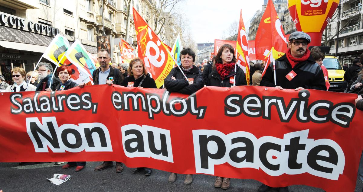Manifestation à Paris le 18 mars 2014 à l'appel de la CGT, FO, FSU, Solidaires, contre le pacte de responsabilité