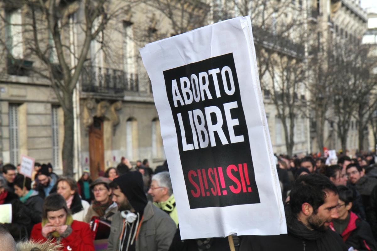 Manifestation à Paris le 1 février 2014 contre la remise en cause du droit à l'avortement en Espagne, la diminution de nombre de centres d'IVG en France