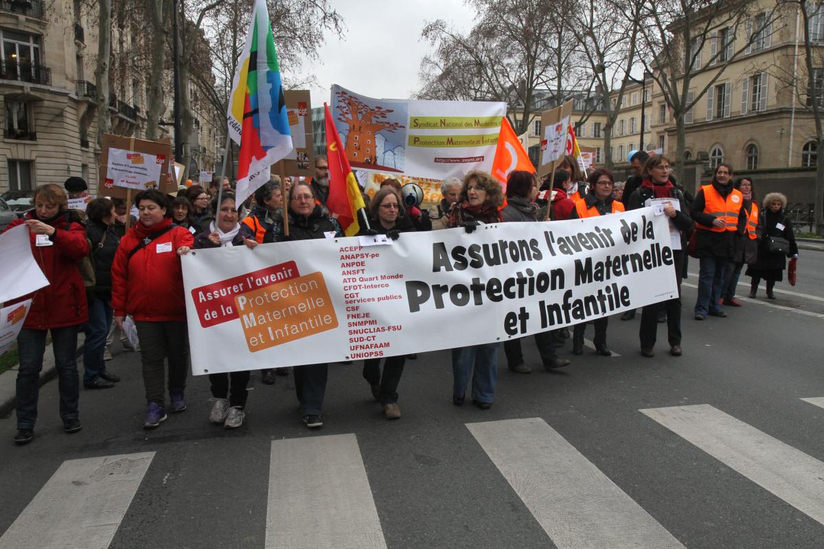 Le 30 janvier 2014, manifestation des personnels des PMI (Protection Maternelle et Infantile) en direction du ministère de la santé